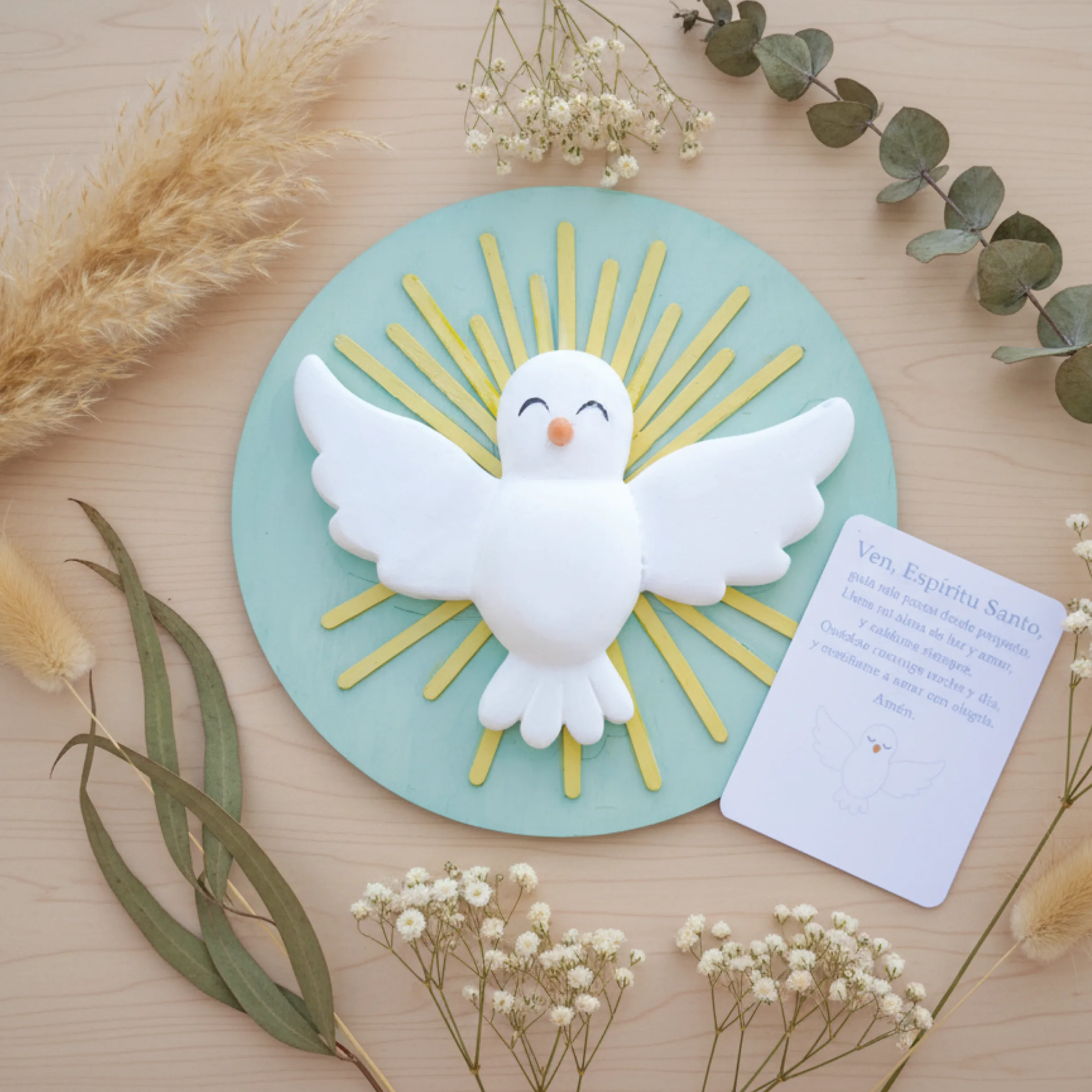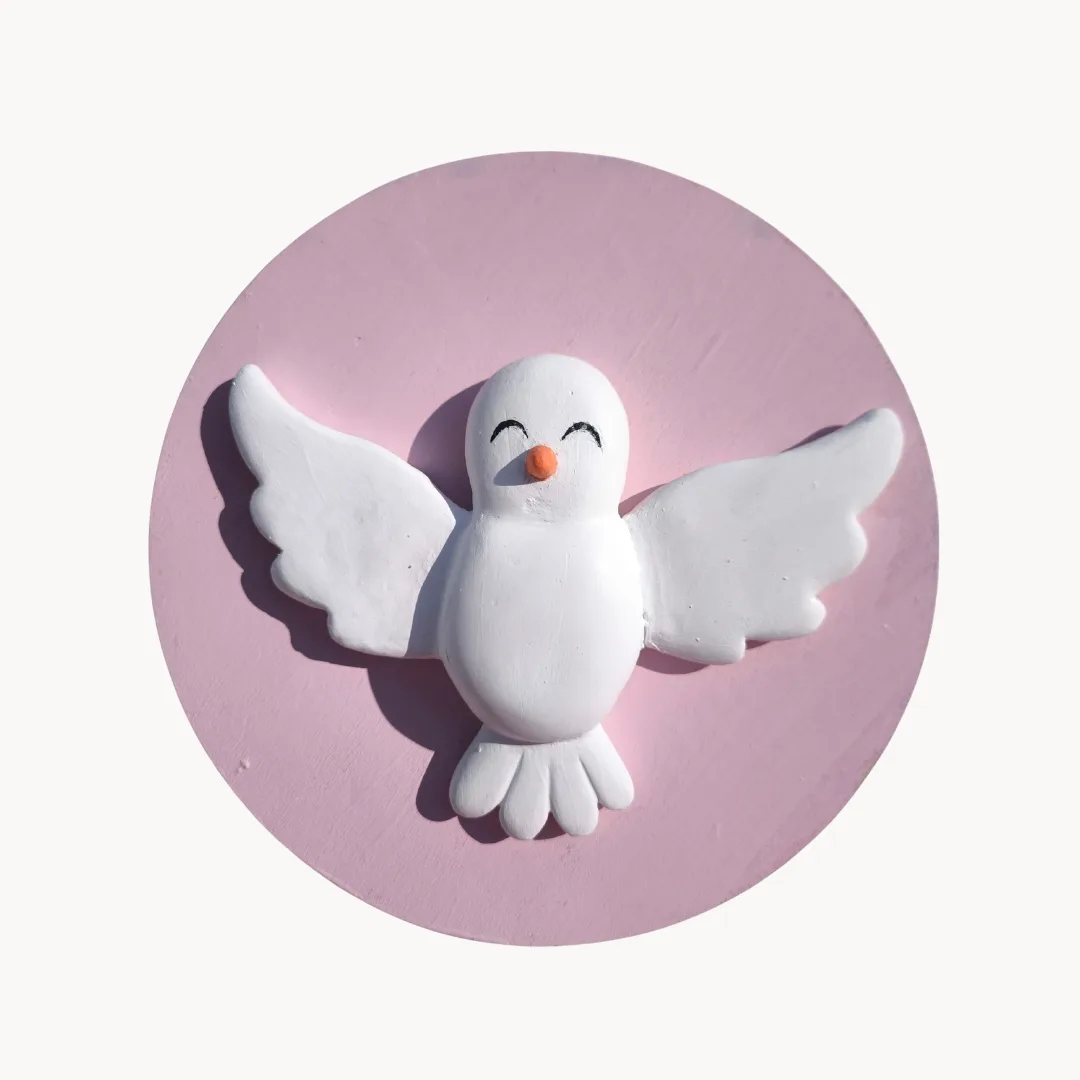 Piezas artesanales diseñadas, modeladas y pintadas a mano, pensadas para llenar de luz y significado el rincón del bebé.