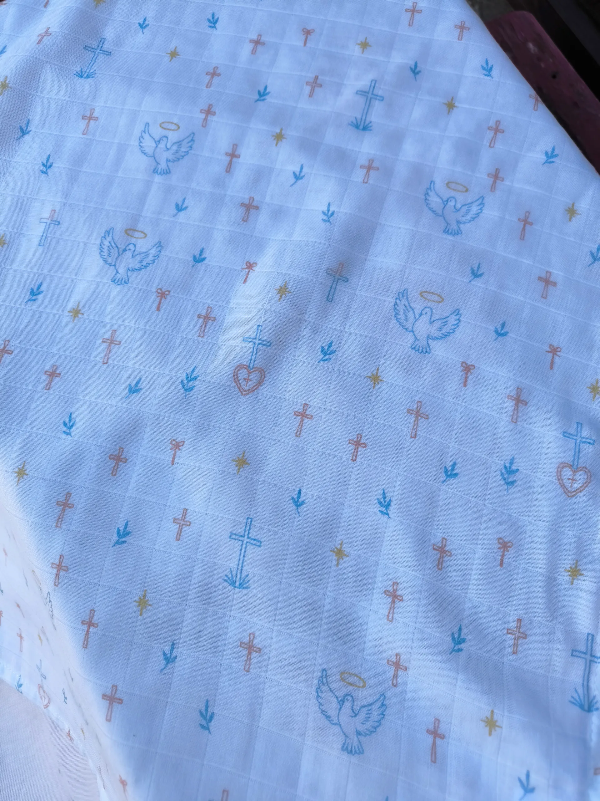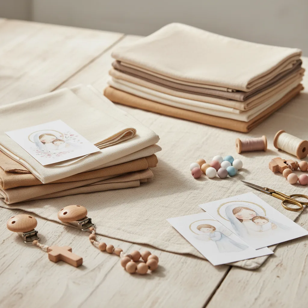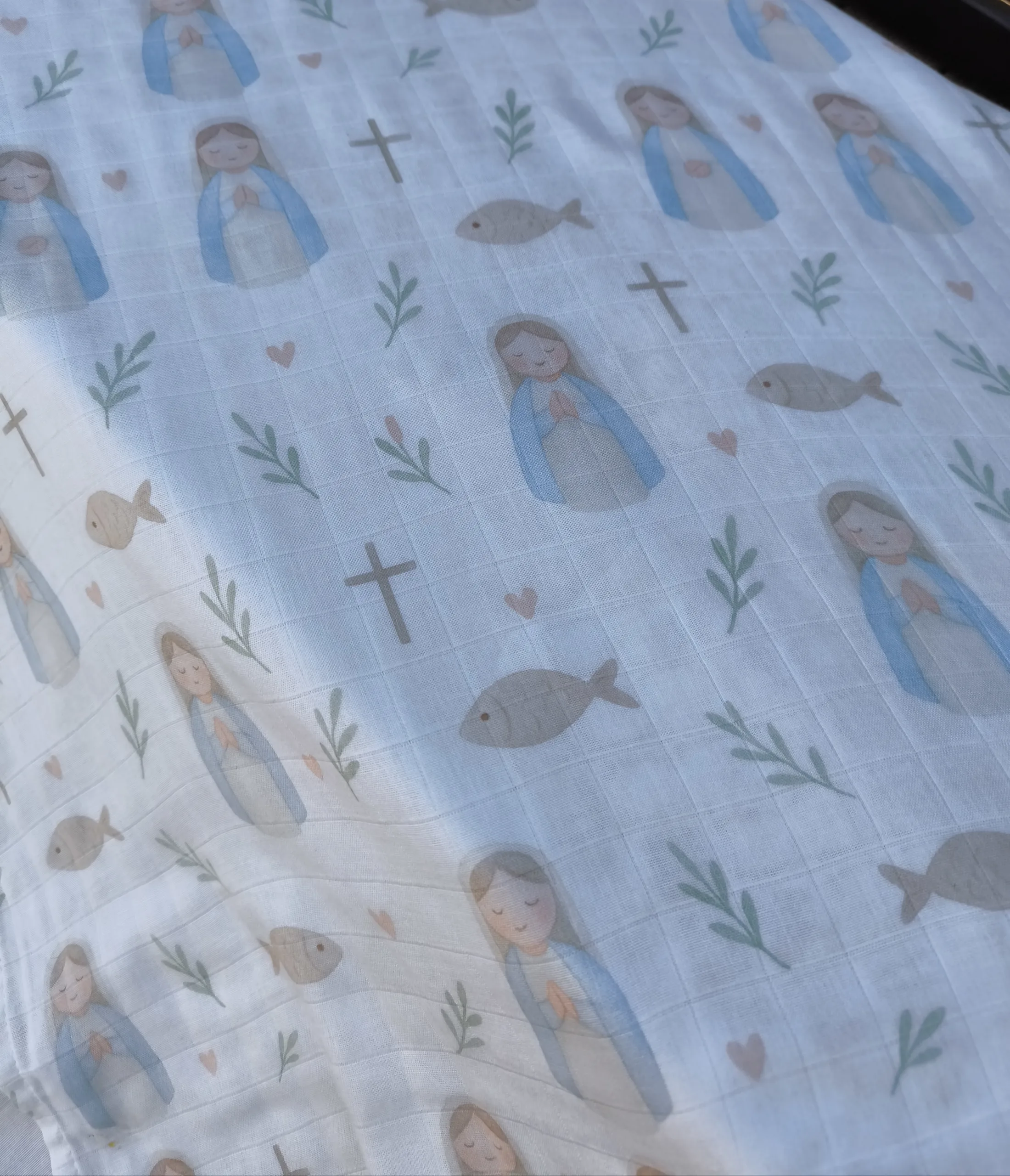 Cada diseño está ilustrado con símbolos de fé, como la Virgen María, el Espíritu Santo, la cruz o el sagrado corazón — en tonos suaves y delicados que inspiran paz.